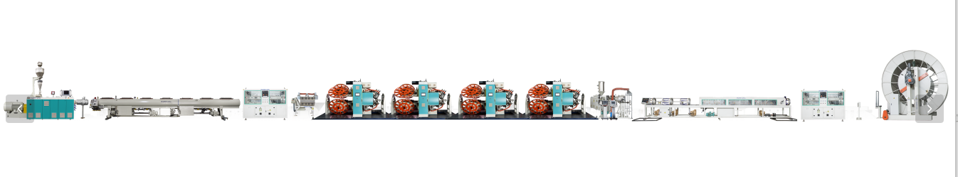 Reinforced Thermoplastic Pipe (RTP) Extrusion Lineປະກອບດ້ວຍສາມພາກສ່ວນ. ສ່ວນທໍາອິດແມ່ນຫນ່ວຍບໍລິການອຸປະກອນ extrusion ທໍ່ພາດສະຕິກພາຍໃນ; ສ່ວນທີສອງແມ່ນຊັ້ນກາງຂອງອຸປະກອນການ winding ສາຍທີ່ບໍ່ແມ່ນໂລຫະ reinforced; ສ່ວນທີສາມແມ່ນດ້ານນອກຫນ່ວຍອຸປະກອນການເຄືອບ HDPE extrusion. ມັນມີຄວາມໄດ້ປຽບຂອງປະສິດທິພາບສູງ, ຄວາມໄວສູງ, ອັດຕະໂນມັດສູງແລະການປະຫຍັດພະລັງງານ. ມັນເປັນອຸປະກອນທີ່ເຫມາະສົມສໍາລັບການຜະລິດທໍ່ປະສົມ RTP.